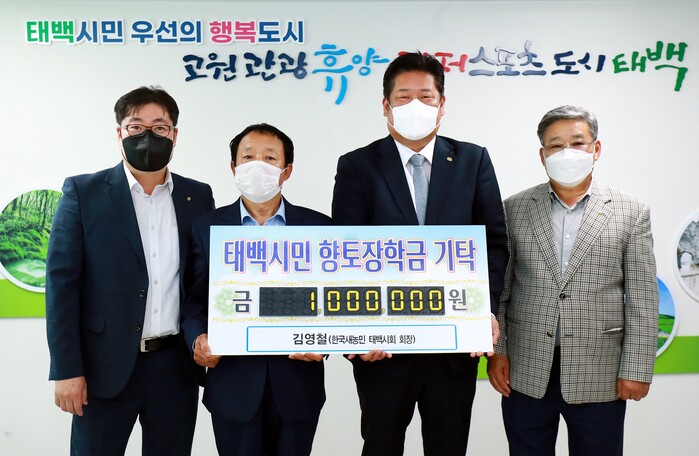 한국새농민 태백시회 김영철 전회장은 13일 태백시청을 찾아 지역인재 육성을 위해 써 달라며 새농민상 본상 상금 100만 원을 (재)태백시민 향토장학회에 장학금으로 기탁했다.