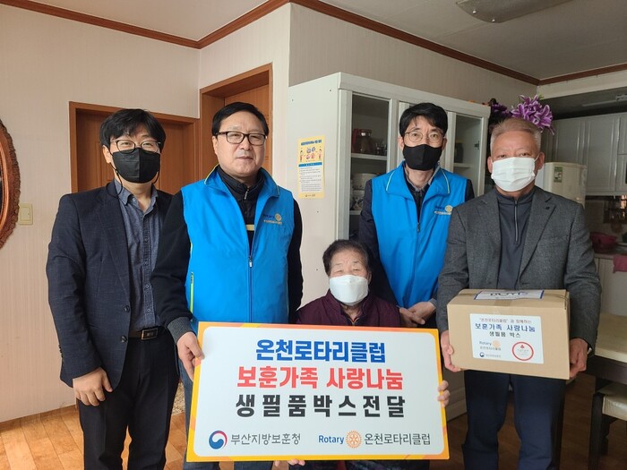 [로컬세계 부산=맹화찬 기자]부산지방보훈청은 24일부산온천로타리클럽(회장 김종인)과 함께 저소득 고령 보훈가족에게 사랑나눔을 위한 생필품 박스를 전달했다.