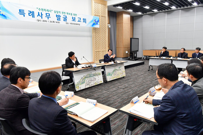 조청식 제1부시장은 “수원시에 실질적으로 필요한 특례사무를 지속해서 발굴하겠다”면서 “재정·사무·조직 등 특례권한을 중앙정부에 건의해 실질적인 자율권한을 최대한 확보하겠다”고 말했다.