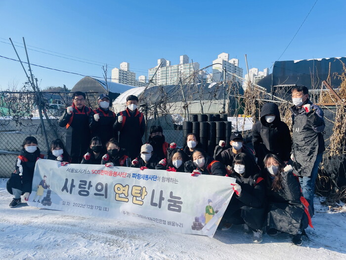 서울도시가스 SCG한마음 봉사단 박삼석 회장은 “배움누리 청소년들과 연탄 나눔 봉사를 함께 해서 더 의미가 있었다. 이번 봉사활동이 주변 이웃을 돌아보며 성장하는 시간이 되었으면 좋겠다”고 전했다.