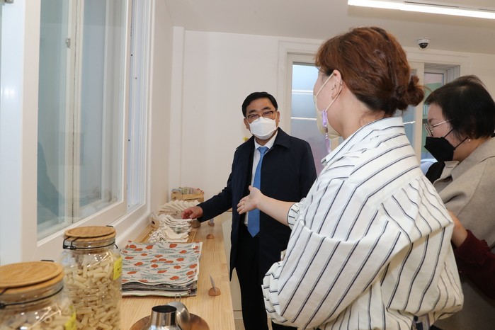 ‘지구를 살리고 꿈을 나누는 행복한 일터’를 주제로 설치된 사업장은 공유주방(김순례 닭강정, 베트남 골목식당)과 생활 소품 제작 맘스공방, 제로웨이스트매장* 비움을 비롯, 지역민들을 위한 커뮤니티 공간이 마련되어 자활참여자의 일터 제공은 물론 지역주민과 소통하고 발전하는 장소가 될 것으로 기대된다.