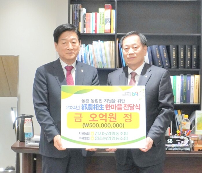 이번 전달식에서 강서농협은 도농상생 실천의 일환으로 거제 연초농협에 무이자선급금 5억 원을 전달했으며, 현재까지 22개 지역농협에 총 110억 원의 무이자 선급금을 지원하며 도시농협의 역할을 충실히 하고 있다.