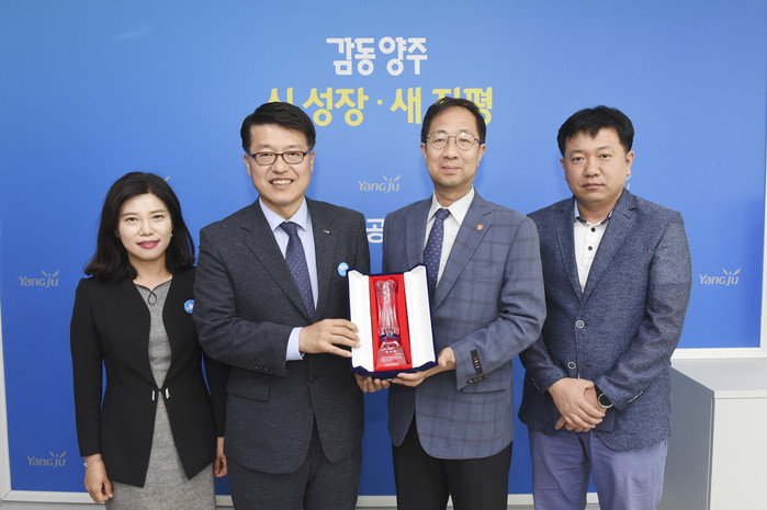 | ▲양주시는 지난 21일 저소득 노인가구 건강보험료 지원 우수기관으로 선정돼 국민건강보험공단으로부터 감사패를 받았다.(양주시 제공) |