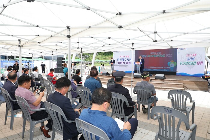 이어 “2022창원코리아 SUP 챔피언십 전국 규모의 해양레저스포츠 대회를 창원특례시 광암해수욕장에서 개최하게 된 것을 기쁘게 생각하며, 이곳을 찾아주신 모든 해양레포츠인들에게 감사하다”며 “이번 대회를 통하여 코로나의 긴 터널을 지나 해양레포츠 활동이 왕성해지고 해양관광산업과 해양관광이 활성화돼 우리 지역경제가 활성화 되기를 기대하며 안전하고 즐거운 대회를 즐기시고 좋은 추억을 간직하게 되길 바란다”고 강조했다.