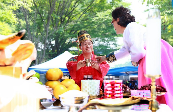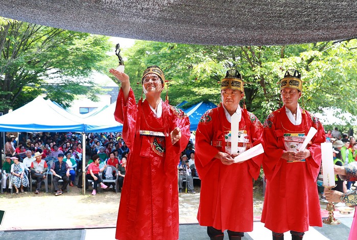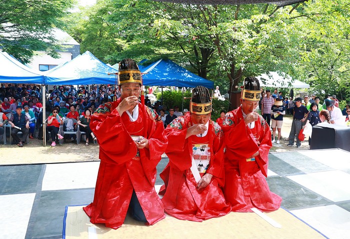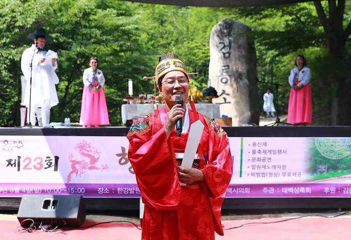 류태호 태백시장이 4일 오전 11시 강원 태백시 검룡소에서 제23회 한강발원제를 봉행하고 있다. 이날 한강 발원제는 초헌관으로는 류태호 태백시장, 아헌관으로 김길동 태백시의회 의장, 종헌관으로 정익교 태백문상록회 회장이 위촉돼 제례를 봉행했다.(사진=태백시 제공)