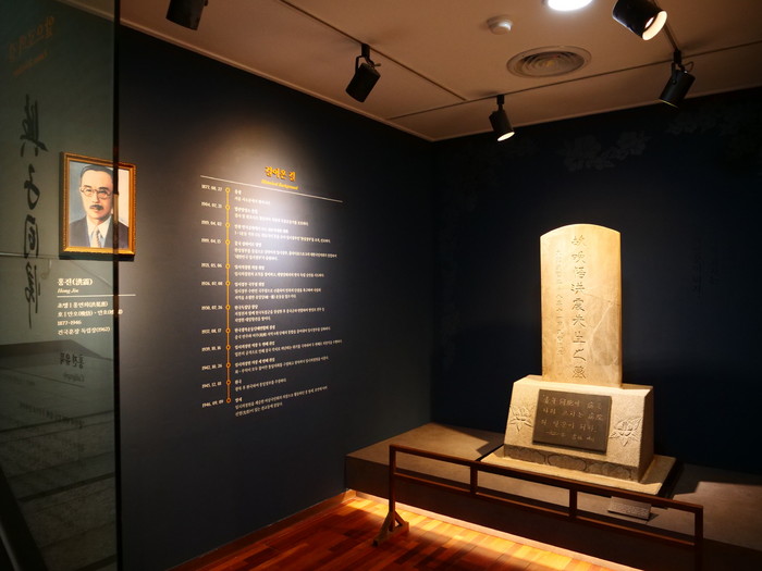 묘비 외에 한성정부 국민대회 취지서 및 선포문, 그리고 대한민국 임시의정원장으로서 홍진의 업적을 재조명할 수 있는 사진과 유묵(遺墨) 등을 만나 볼 수 있다.