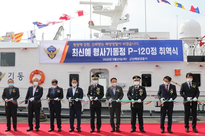 군산해양경찰서는 29일 오후 2시 해양경찰 전용부두(군산항 1부두)에서 김도준 서해지방해양경찰청장, 강임준 군산시장 등 내·외부 인사 30명이 참석한 가운데 형사기동정(P-120) 취역식 행사를 개최했다고 밝혔다.