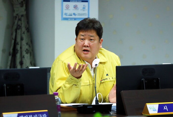 ▲이상호 시장이 ‘2023년 주요업무 시행계획 보고회’를 주재하고 있다. 태백시 제공 |