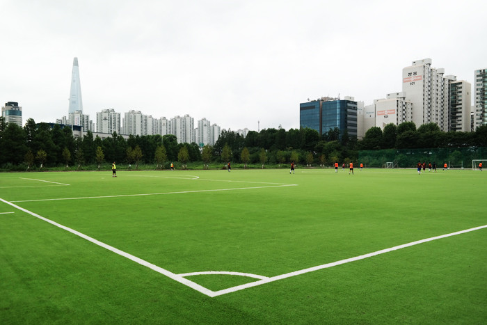 ▲성내유수지 축구장에서 시민들이 경기를 하고 있다. |