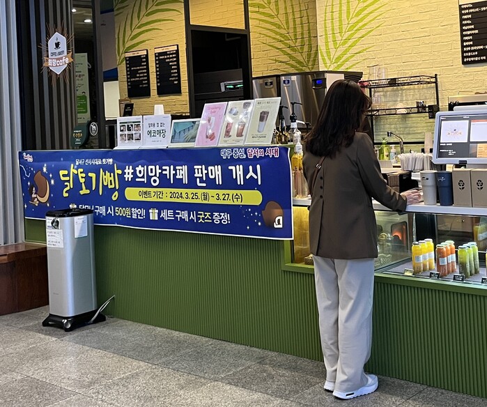 판매가 시작되는 3월 25일부터 3월 27일 3일간 희망카페를 이용하는 직원 및 민원인을 대상으로 달모닝세트(음료 1잔, 달토기빵 2개) 구매 시 500원의 할인과 달토기빵 세트 구매 시 친환경 다회용컵을 증정하는 판매개시 이벤트를 진행한다.