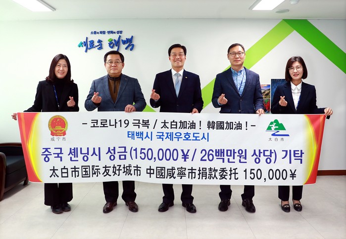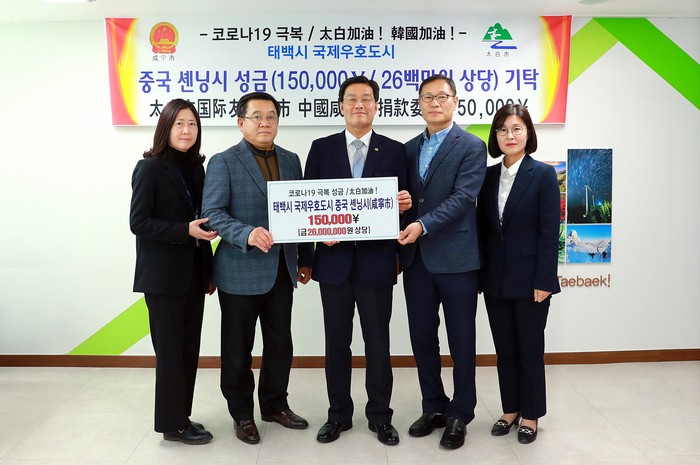 태백시는 셴닝시로부터 기탁 받은 성금을 지역 내 저소득계층의 코로나19 극복 지원에 사용할 예정이다