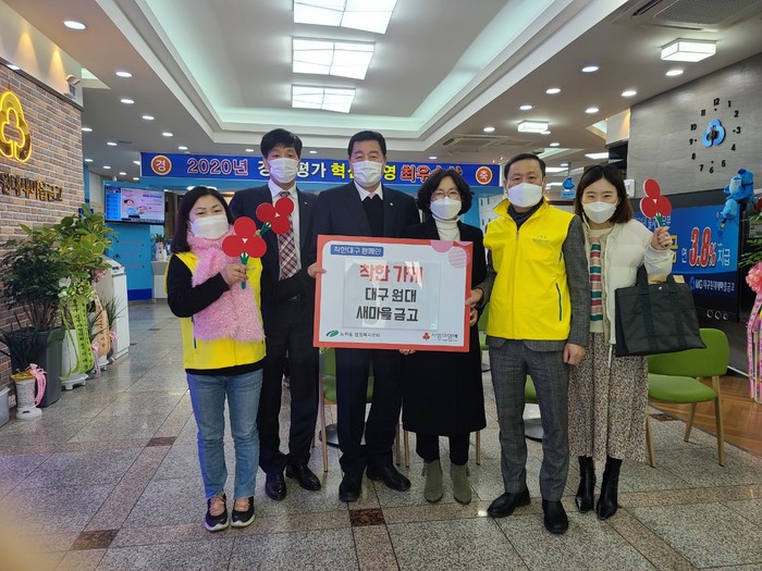 [로컬세계 박세환 기자]대구 북구 노원동 지역사회보장협의체는 18일 대구사회복지공동모금회가 연중 진행하는 착한대구 캠페인에 동참한 원대새마을금고(이사장 박무완), 위드건설(대표 문수철)에서 착한가게 현판 전달식을 가졌다.
