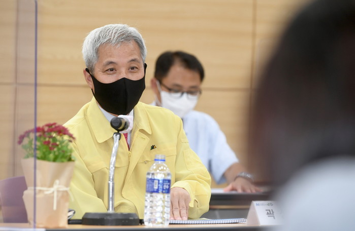 | ▲곽상욱 시장이 6일 ‘2022 제10회 경기정원문화박람회’기본계획 및 실시설계 용역 중간보고회를 주재하고 있다. 오산시 제공 |