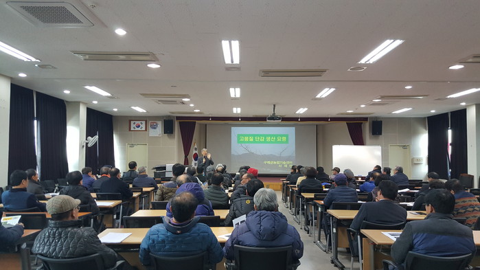 이날 교육은 구례군농업기술센터 서재만 강사가 60여 명의 농가를 대상으로 구재배현장에서 실천할 수 있는 실용기술을 중심으로 진행했다.