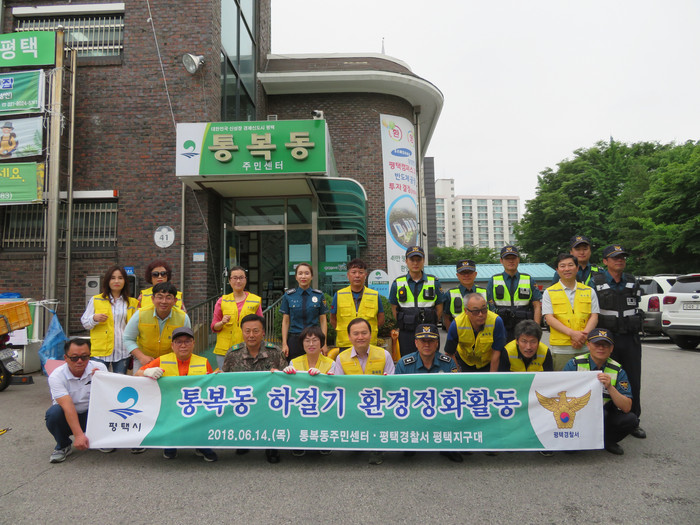 황인학 평택지구대대장은 “청결한 도시환경 조성을 위해 함께할 수 있어 기쁘다”며 “앞으로도 누구나 살고 싶은 통복동에 되도록 치안활동에 노력해 나가겠다”고 전했다.