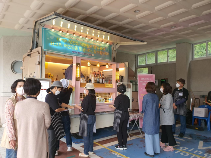 ▲코로나19 대응인력 심리지원 응원커피트럭 운영 모습. 태백시 제공 |