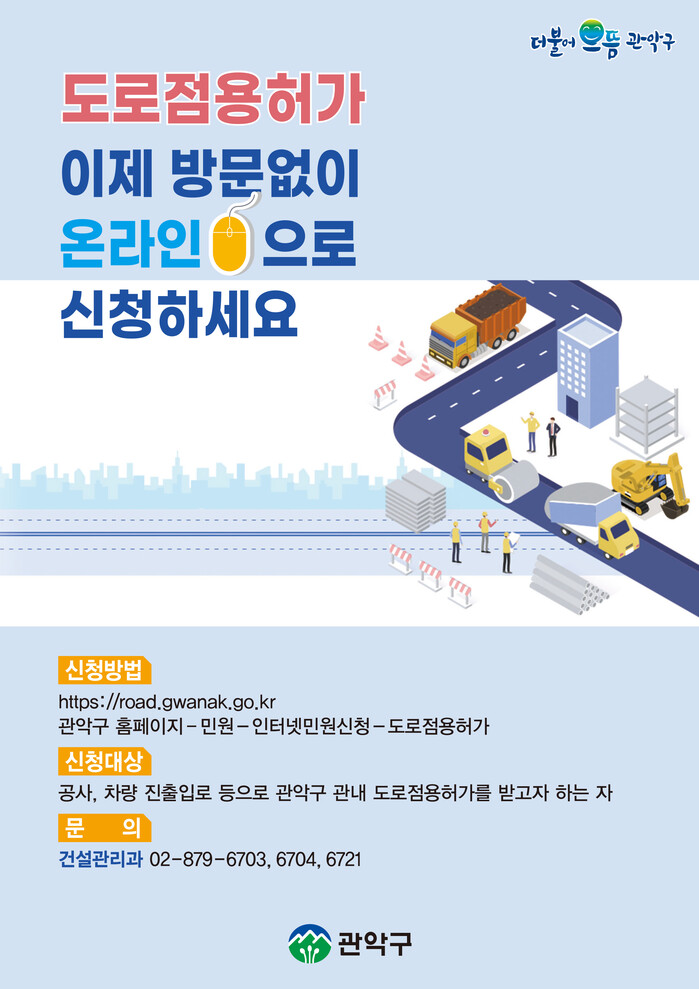 [로컬세계 = 임종환 기자]서울 관악구가 ‘도로점용허가 온라인시스템’을 구축해 16일부터 온라인으로 도로점용허가 서비스를 실시한다.