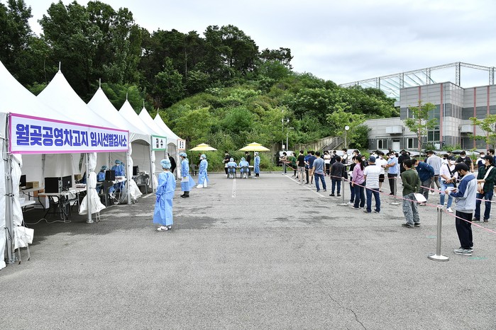 김포시는 원활한 검사를 위해 기존 마산동 임시선별검사소(김포한강8로198-3), 사우동 임시선별검사소(돌문로15번길36-10/드라이브스루) 외에 이번에 월곶공영차고지 임시선별검사소(김포대로2600)를 추가 설치했다.