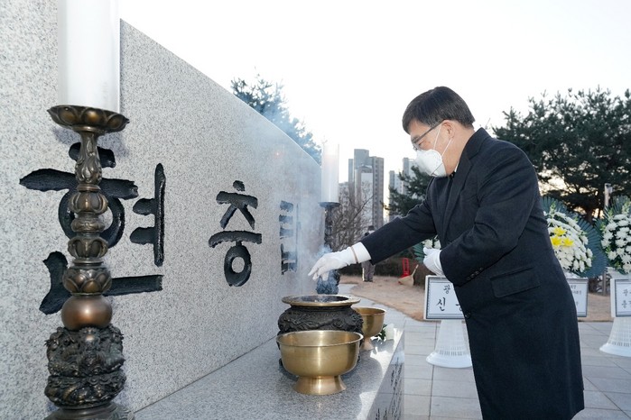 [로컬세계 김병민 기자]신동헌 경기 광주시장은 3일 2022년 임인년(壬寅年) 새해를 맞이해 현충탑을 찾아 참배를 하는 것으로 새해 첫 일정을 시작했다.