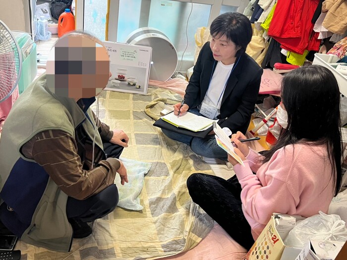▲ 대구 수성구청 직원과 관계자가 중증 장애인 가구를 방문해 상담을 진행하는 모습. 수성구 제공 |