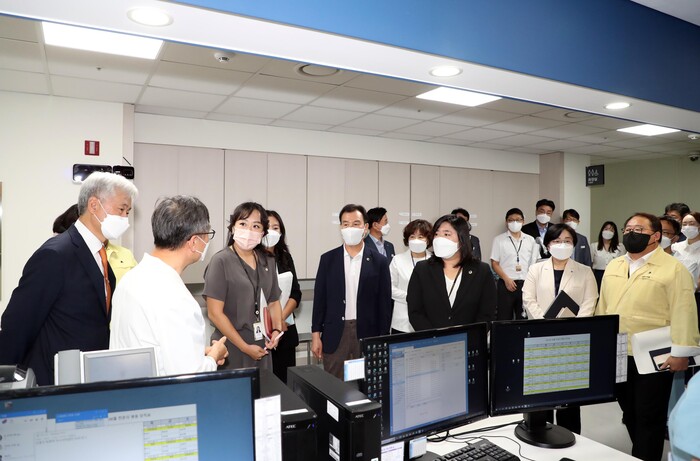 이어 방문한 성남시의료원에서는 미개설 진료과 문제, 인력 충원 문제 등 의료원의 현안 사항에 대한 보고를 받은 후, 경영효율화, 조직문화 개선 등 목표 달성을 위해 더욱 노력하고, 내부 문제로 인해 시민이 피해를 받는 일이 없도록 주의해 줄 것을 당부했다. 보고 및 의견나눔을 완료한 이후에는 호스피스병동 등 의료원 시설을 둘러보고 코로나19 재유행 대응으로 노고가 많은 의료진을 격려했다.