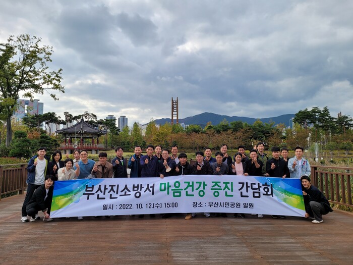 [로컬세계 부산=맹화찬 기자]부산진소방서는 12일 부산 시민공원 일대에서 직원 스트레스 해소를 위한 마음건강증진 간담회를 실시했다고 밝혔다.