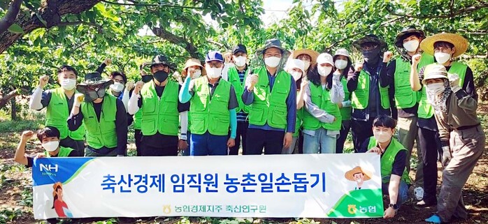 농협경제지주 축산사료자재부 임직원들은 17일 경기 안성시 과수농가를 방문해 제초 작업과 농자재 운반 작업을 진행하고, 인근 마을에서 플로깅 활동을 전개하는 일손돕기를 실시했다고 밝혔다.