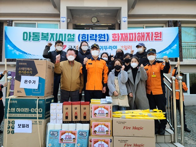[로컬세계 맹화찬 기자]부산 금정소방서는 귀뚜라미 보일러와 함께 10일 화재로 피해를 입은 금정구 노포동 소재 아동복지시설(희락원)에 도움의 손길을 전했다.