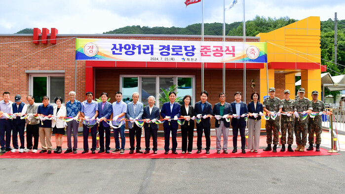강원 화천군 상서면 산양1리 경로당 준공식이 25일 산양리에서 최문순 군수, 류희상 군의회 의장, 이화원 군노인회장을 비롯한 주민들이 참석한 가운데 열렸다. (사진=화천군청 제공)
