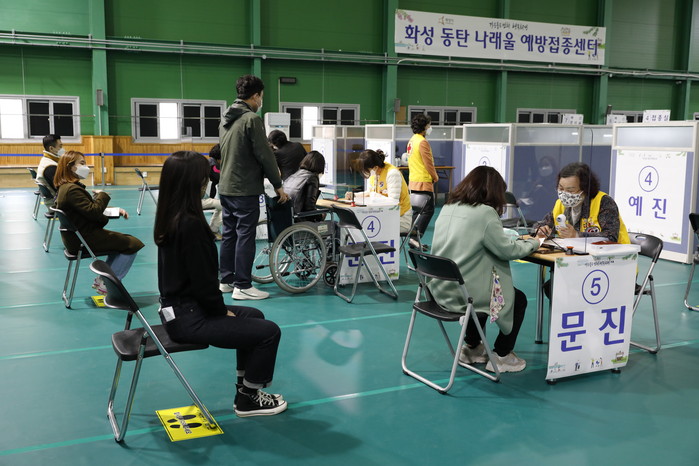 동탄나래울복지관 2층 배드민턴장에 설치된 예방접종센터는 4월 중순부터 75세 이상 어르신을 대상으로 운영된다.