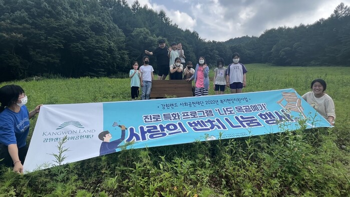 이날 행사는 강원랜드 사회공헌재단이 후원하는 2022년 복지현장지원사업의 일환으로 추진됐으며, ‘나도 목공예가’ 진로특화 프로그램 참여를 통해 평소 실력을 갈고 닦은 아이들 10명이 참여해 직접 벤치 2개를 제작, 문곡소도동에 기부했다.