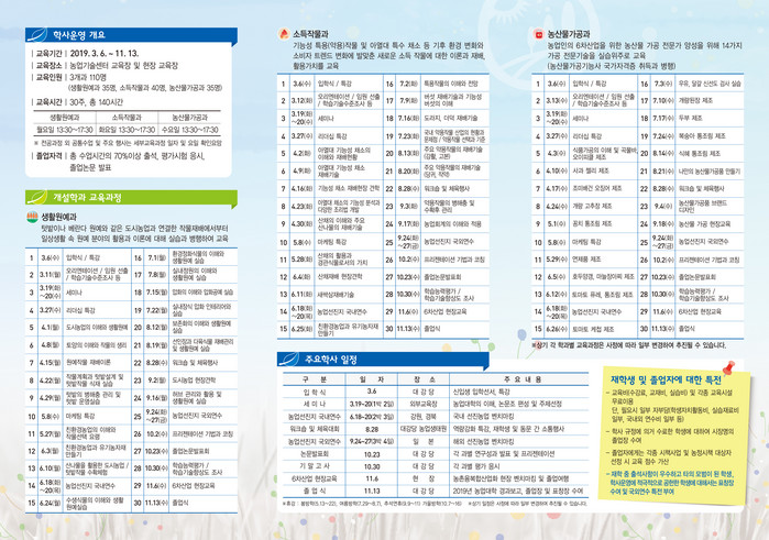 슈퍼오닝농업대학은 내년 3월부터 11월까지 총 30주, 140시간으로 운영된다. 수강료, 교제비 등 교육비는 전액 무료다.