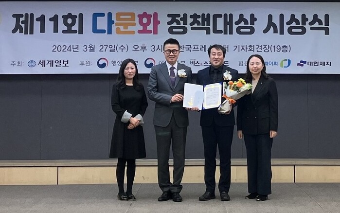 [로컬세계=박세환 기자]대구 달서구가족센터가 지난 3월 27일 다문화 정책 발전에 기여한 공로를 인정받아 ‘제11회 다문화정책대상’에서 세계일보 사장상 우수상을 수상했다고 2일 밝혔다.