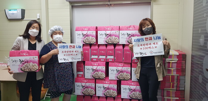 다인면에 위치한 조옥란한과는 지역농산물을 이용한 전통 수제한과의 맥을 잇고 있는 관내 손꼽히는 한과업체로 이웃들에게 도움을 주고자 맛 좋은 건강 간식으로 조옥란한과세트를 기탁했다.