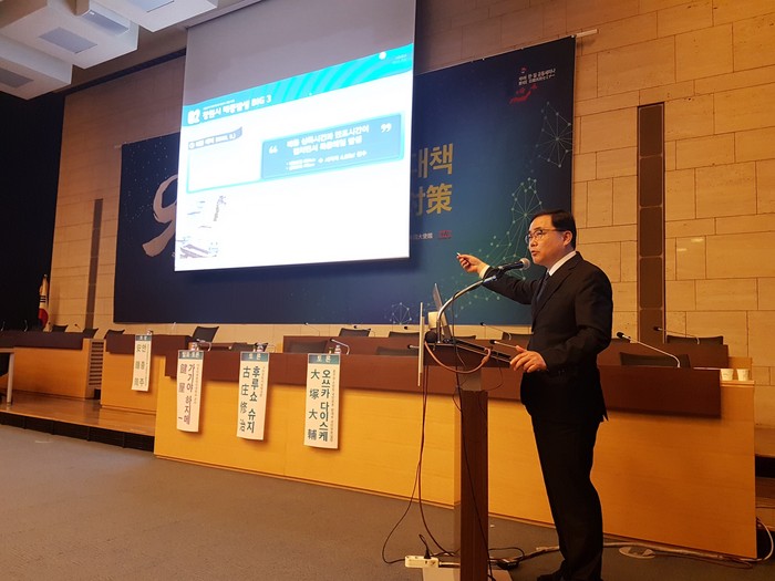 | ▲허성무 시장이 한·일 공동세미나서에서 “지방정부 재난대응” 기조강연 모습.(창원시 제공) |