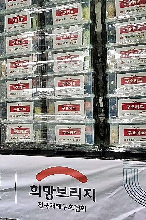 이와 함께 LG유플러스는 희망브릿지와 함께 제작한 긴급 구호키트를 전달했다. 구호키트는 모포류, 피복류, 위생용품, 생활용품, 의약품, 안전용품 등 재난 발생 시 이재민에게 필요한 물품들로 구성됐다.