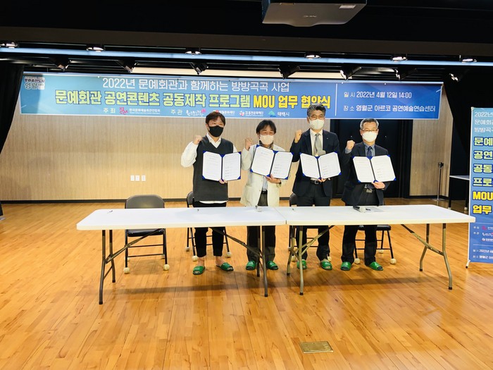협약식은 태백시문화예술회관 박현모 문화관광과장, 영월문화재단 강희신 사무처장, 원주문화재단 황운용 공연장운영팀장, 홍천문화재단 허성만 운영 본부장, 공연제작 관계자들이 참석한 가운데 진행됐다.