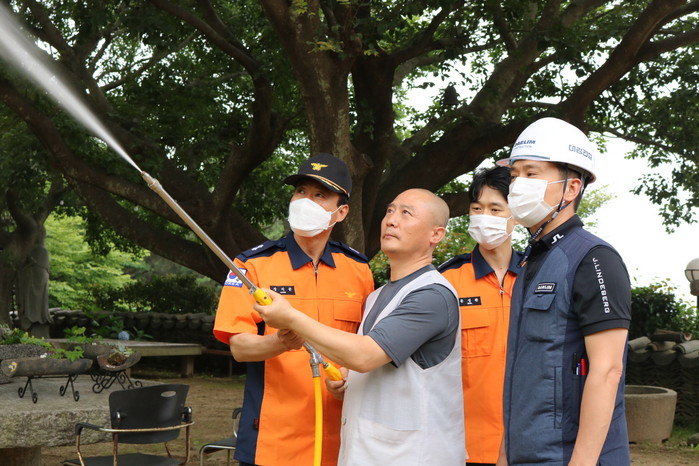 이날 행사는 기증받은 소방시설의 사용상태 확인점검, 사찰관계자 사용·관리법 교육, 소방시설 설치 및 작동 시연 등으로 진행했다.