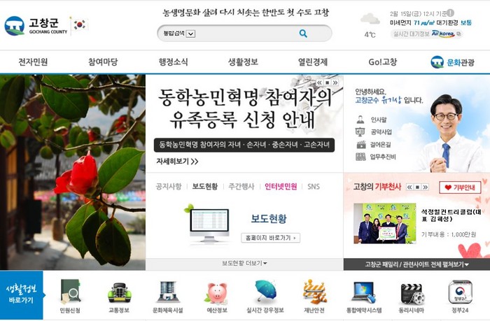 박종연 군 정보통신팀장은 “고창군 홈페이지를 애용하는 사용자 의견을 적극 반영해 완성도 높은 홈페이지를 만들어 내겠다”고 말했다.