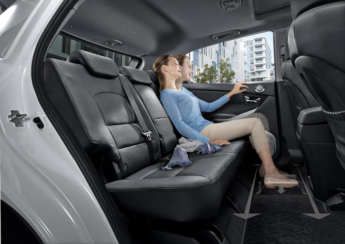 17.5도 리클라이닝(뒤로 젖히기)이 가능한 2열 시트와 코란도 C만의 특장점인 2열 플랫 플로어는 장시간 이동에도 후석 승객의 안락함을 보장하며, 짐이 많을 경우 2열 시트를 폴드&다이브하여 완전히 평평한 적재공간을 확보할 수 있다. 러기지룸에는 대형 2단 트레이 등 다양한 수납공간이 마련되어 있다.