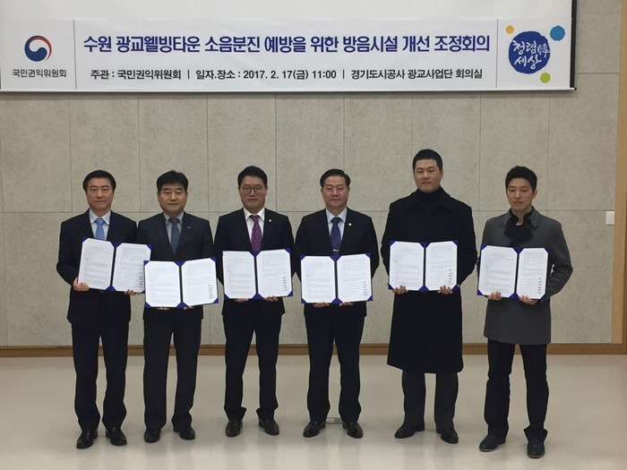 17일 경기도에 따르면 국민권익위원회는 이날 경기도시공사 광교신도시사업단에서 ‘수원 광교웰빙타운 소음분진 예방을 위한 방음시설 개선 조정회의’를 열고 최종 합의안을 확정했다.