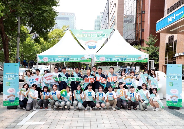 농협(회장 강호동) 상호금융 대학생 홍보단 NH콕서포터즈 3기는 12일 여의도 농협재단 앞에서 범국민 쌀 소비촉진을 위한 ‘쌀맛 나는 하루’ 캠페인을 펼쳤다.