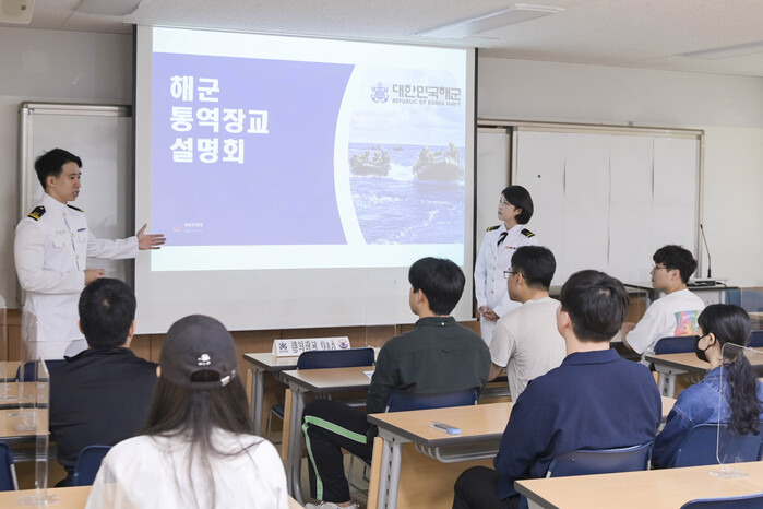 해군작전사령부 소속 통역장교 고태환 중위 등 3명은 30일 부산대학교 문창회관에서 ‘해군 통역장교 설명회’를 개최했다.