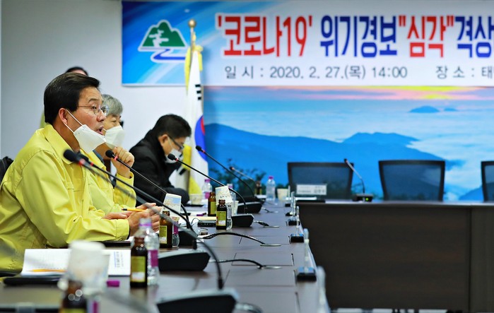 [로컬세계 박상진 기자]강원 태백시는 코로나19가 위기경보단계 ‘심각’ 격상 등 중대 고비를 맞고 있는 데 따라, 27일 오후 2시 시청 소회의실에서 관계기관 긴급대책회의를 개최했다.