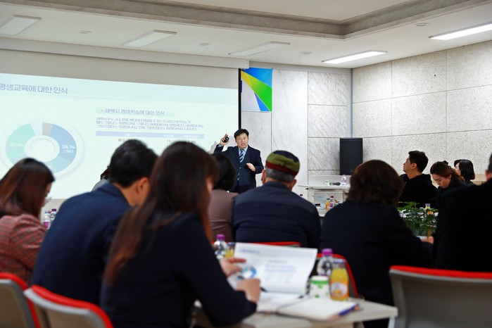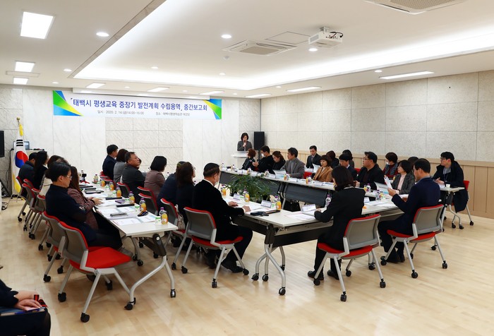 강원 태백시는 14일 오후 태백시 평생학습관에서 류태호 태백시장을 비롯해 전도근 HID컨설팅 책임연구원, 관계장 등이 참석한 가운데 태백시 평생교육 중장기 발전계획 수립 연구용역 중간보고 및 평생교육 발전방안을 위한 의견수렴 등을 진행했다.(사진=태백시 제공)