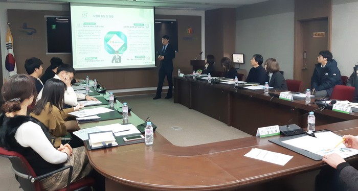 | ▲24일 수원시청 영상회의실에서 열린 '2019 수원시 정보시스템 통합유지관리 용역 착수보고회'에서 (주)유알피시스템 관계자가 사업방향을 설명하고 있다.(수원시 제공) |
