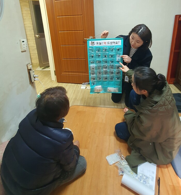 ‘복용부터 폐기까지, 찾아가는 의약품 원스톱서비스’는 의료급여 수급자 중 질병 대비 다빈도 의료이용자를 대상으로, 의료급여 관리사가 가정 방문 시 복용하고 있는 약을 점검하여 중복투약, 약물 오・남용 방지를 위한 교육을 하고 유통기한 만료된 폐의약품을 직접 수거, 폐기까지 하는 사업이다.