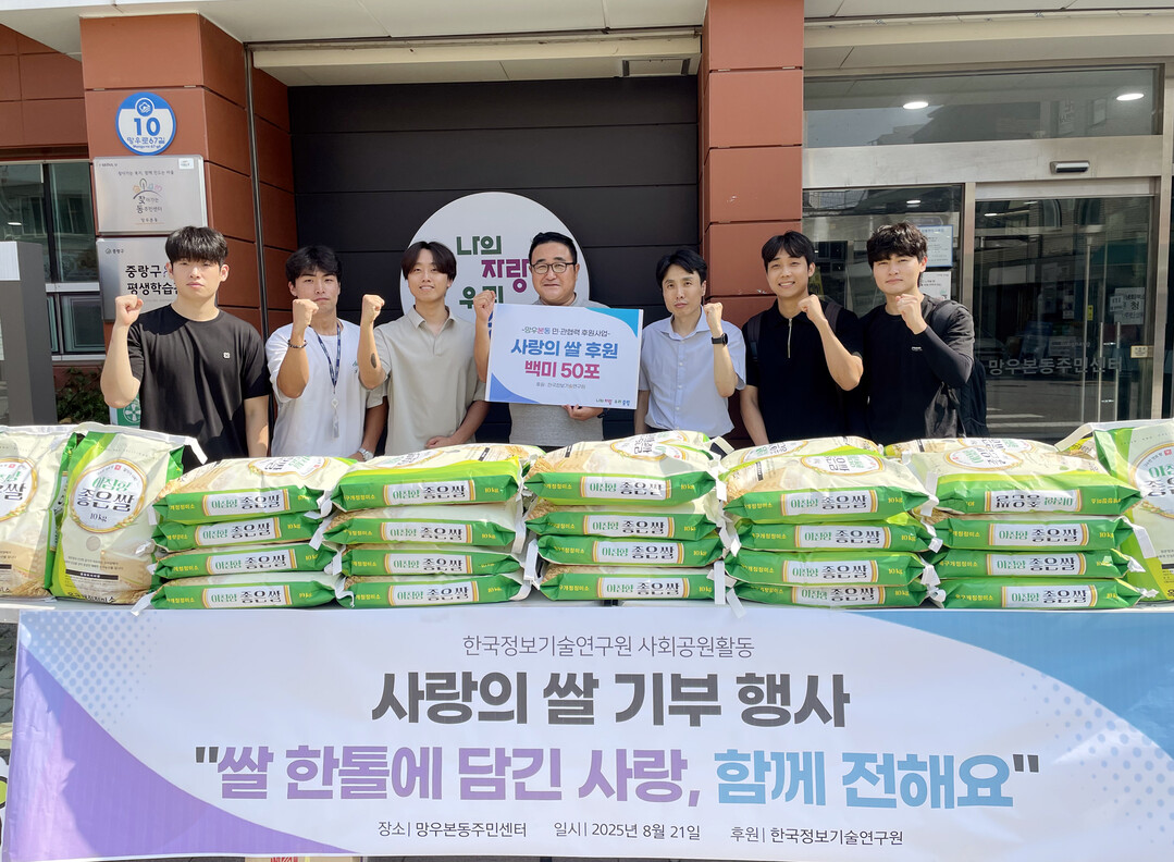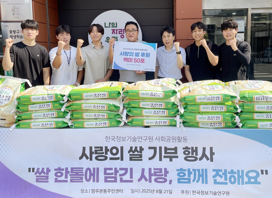 한국정보기술연구원이 소외된 이웃을 돕기 위해 ‘사랑의 쌀’ 500kg을 서울시 중랑구 망우본동주민센터에 전달했다.
