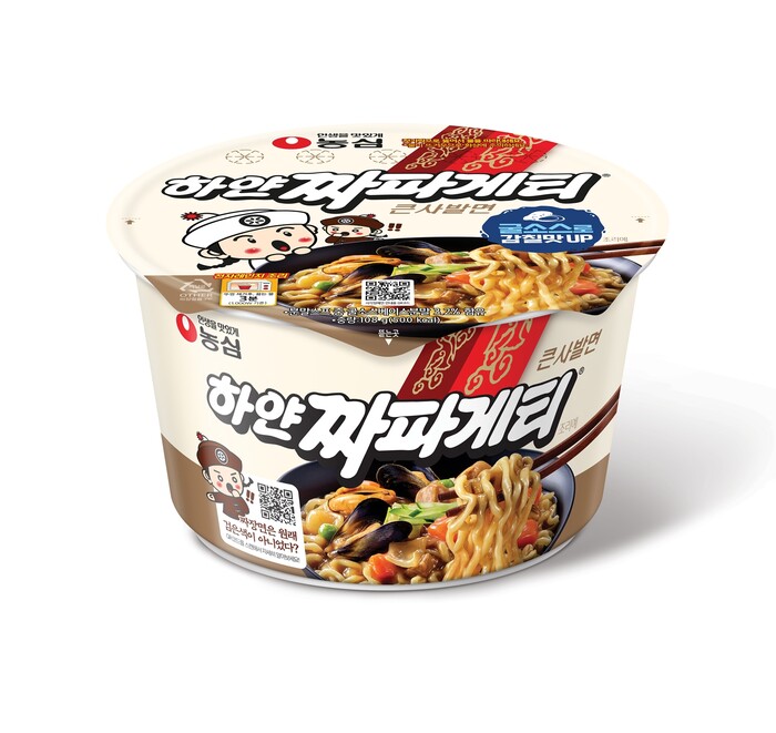 연갈색의 춘장을 사용해 기존 짜파게티와 차별화된 비주얼을 구현했으며, 굴소스를 추가해 해물의 감칠맛을 한층 살린 것이 특징이다. 농심은 일부 중국요리점에서 하얀 짜장면이 이색 메뉴로 소비자들에게 인기를 얻고 있다는 점에 착안해 하얀 짜파게티 큰사발을 개발했다.