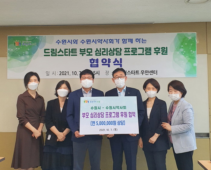 [로컬세계 김병민 기자]경기 수원시 드림스타트와 수원시약사회가 7일 드림스타트 우만센터에서 후원 협약을 체결하고, 드림스타트 양육자 심리상담 지원에 협력하기로 했다.